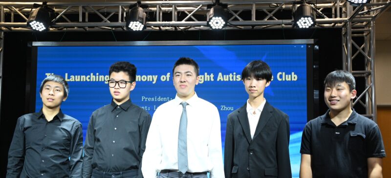 “星光自闭症关爱社团”主席Fan He,副主席Lun chang Zhang和Wenbo Zhou,秘书长Dongzi Liu、财务部长Johnny Tao