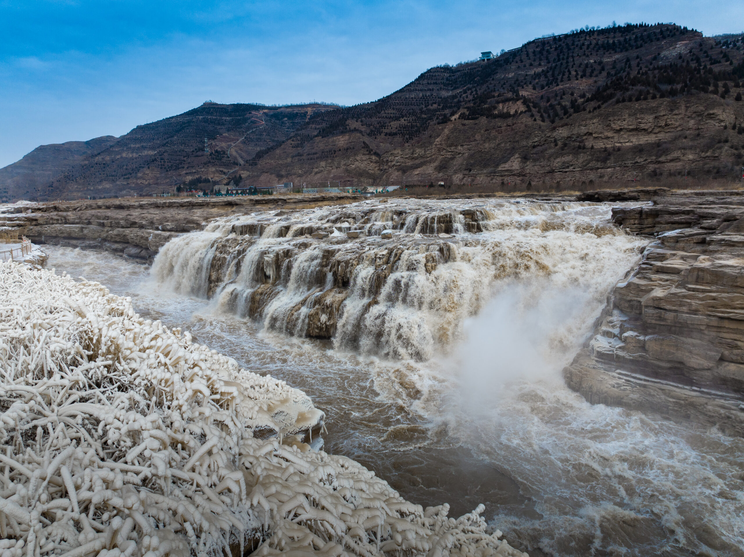 壶口瀑布出现冬季流凌景观