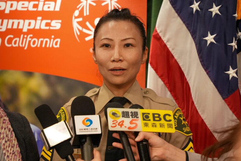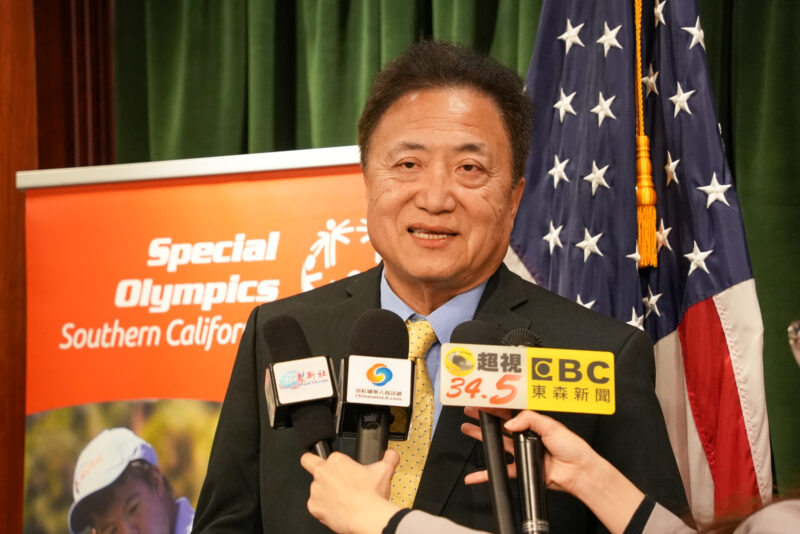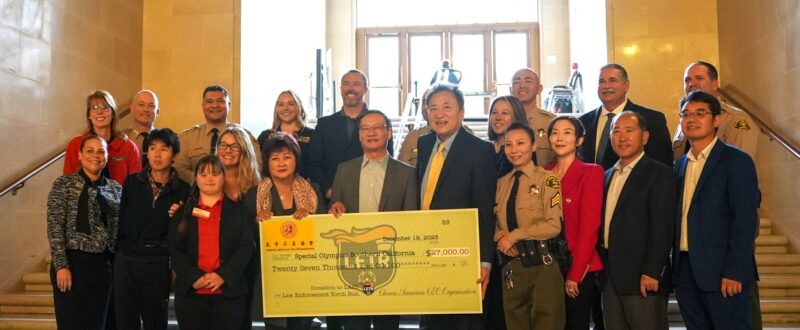 本次捐赠仪式由洛杉矶县警队长Ernest Bille、美中工商协会会长林宁国与其会员理事热情出席见证,并由特奥委会南加分会主席兼执行长Kelly Pond和特奥运动员代表,到场接受支票捐赠。Kelly Pond表示,特奥的运动员接受训练与比赛都无需负担任何费用,但为了维持特奥分会的运作,每一笔善款对分会来说,都相当珍贵。