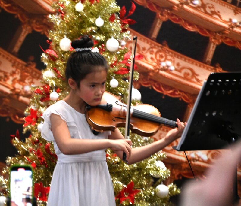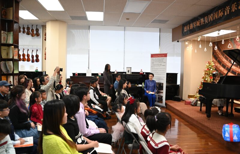 十多位学音乐的孩子演奏了钢琴曲及小提琴,让圣诞音乐会充满活力与节日快乐氛围。天普市市长文尚丞也上台演奏钢琴曲,给圣诞音乐会带来惊喜。位于天普市的德国钢琴城经营已有十多年,是最专业和最具规模的琴行之一,获德国、俄罗斯、中国和美国等世界著名钢琴家高度推荐,并获上百位钢琴老师和客户书面推荐,由30多年经验、获调音行业杰出精英奖的黄学文调音技师亲自选琴和调音。
