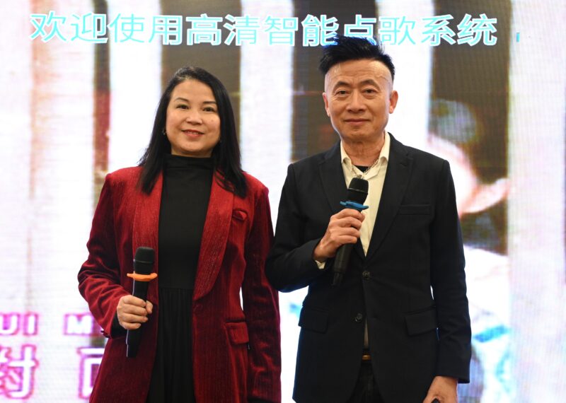 彭南林副会长(右)、资深会员梅红联袂主持联欢会