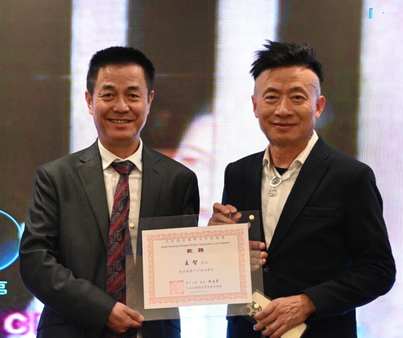 张五星会长、北美华文作家协会副会长彭南林为新任副会长王智颁发聘书