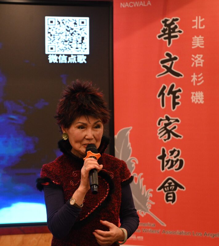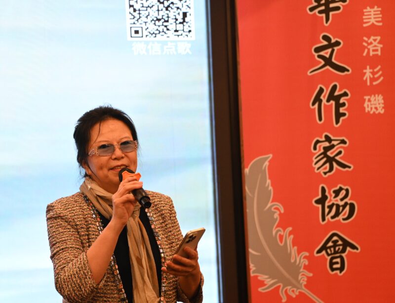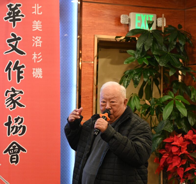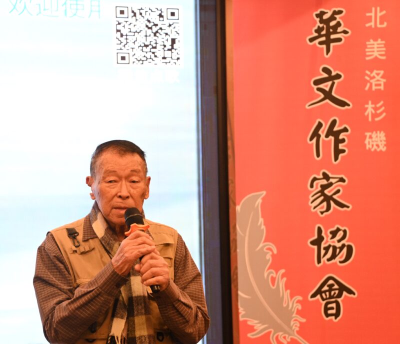 北美洛杉矶华文作家协会会长张五星(左)致词