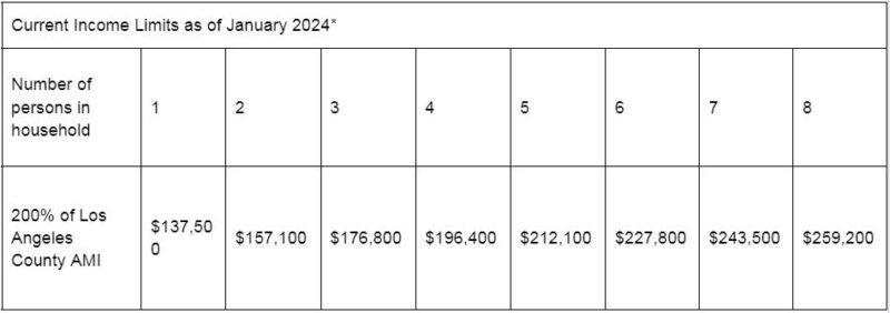 年度家庭收入不得超过洛杉矶郡地区收入中位数的200%