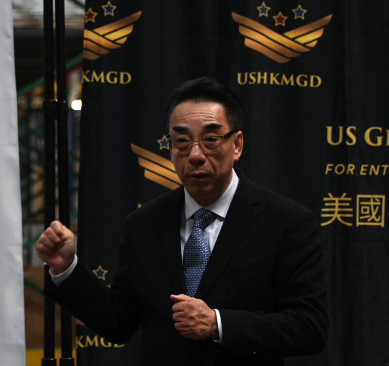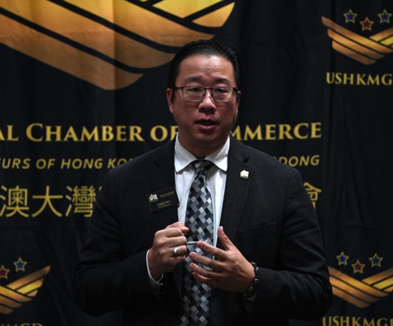 美国粤港澳大湾区企业家总商会创会会长、前蒙特利公园市市长林达坚致词