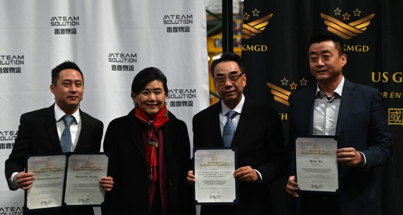 美国国会议员赵美心、前加州众议员伍国庆、林达坚会长与A-Team Solutions团队合影