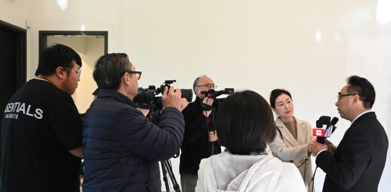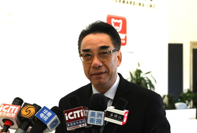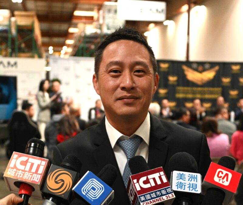 美国粤港澳大湾区企业家总商会创会会长、前蒙特利公园市市长林达坚接受各大媒体记者访问