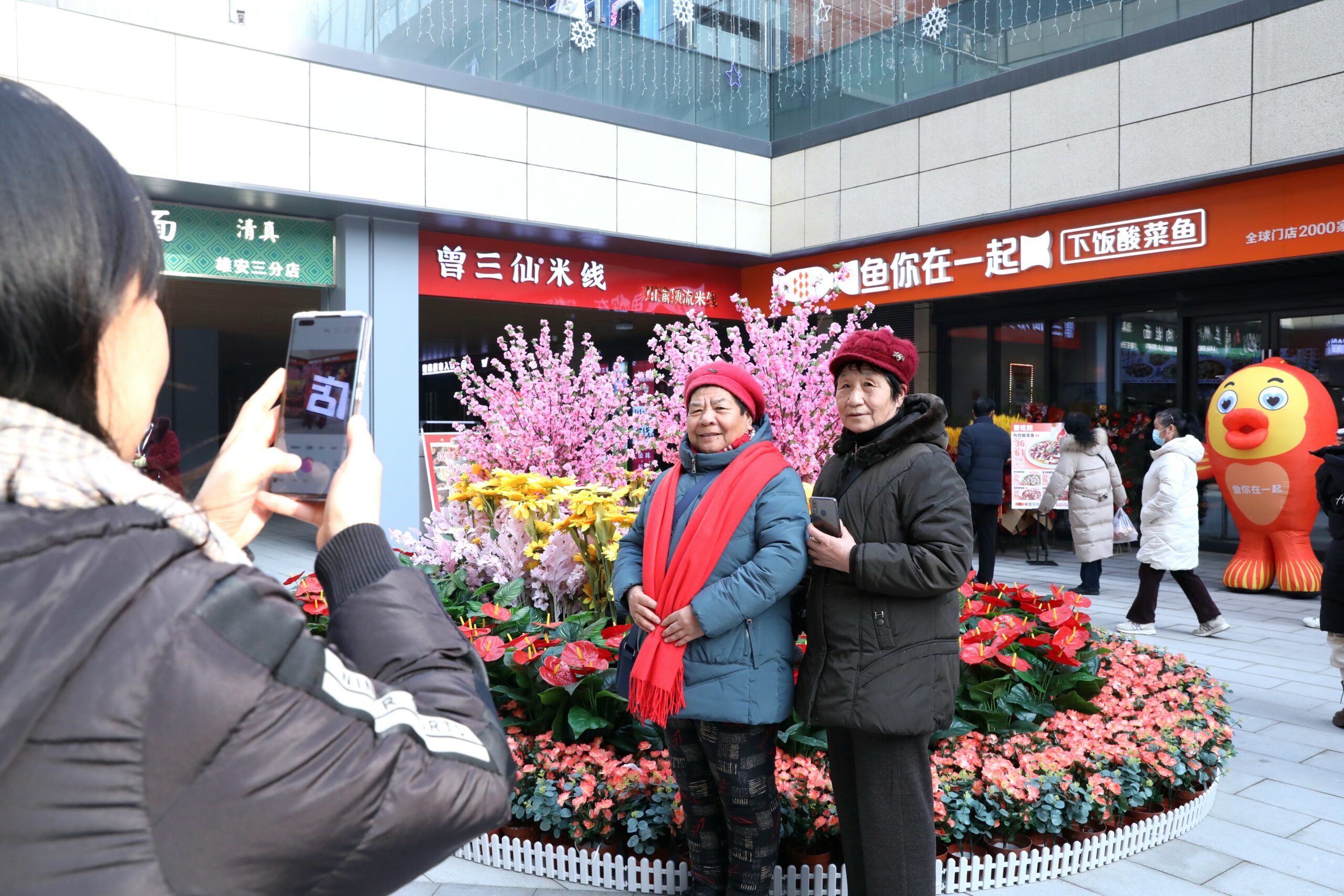 1月12日,雄安新区2024年新春嘉年华启动暨雄安奥特莱斯商区开街活动举办,标志着雄安新区首个大型集中商业街区开街,为雄安及周边居民提供一站式休闲购物体验。图为民众在雄安奥特莱斯商区拍照。
