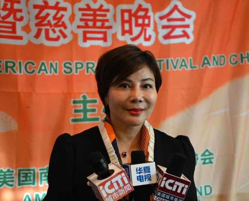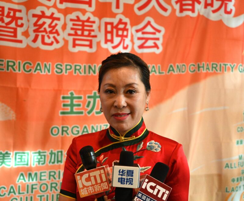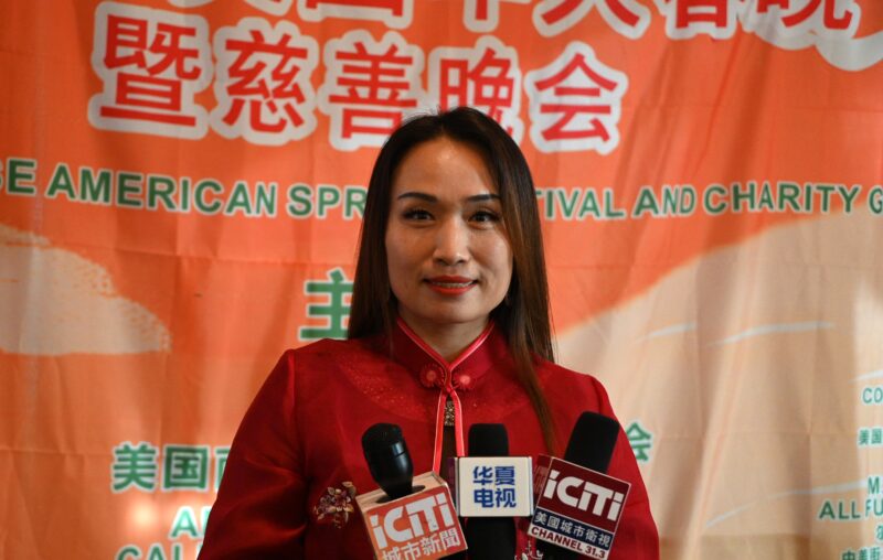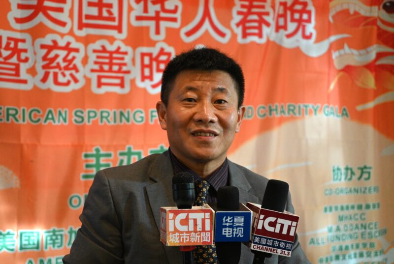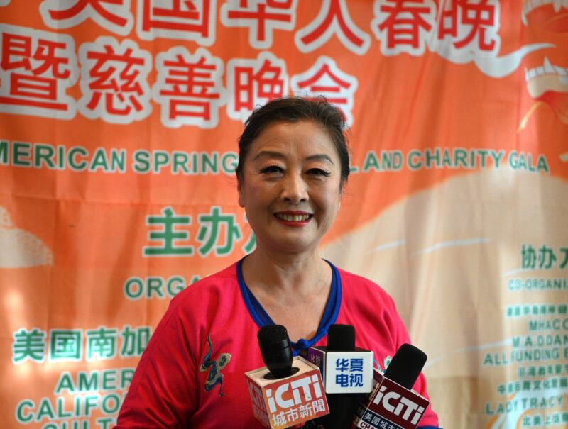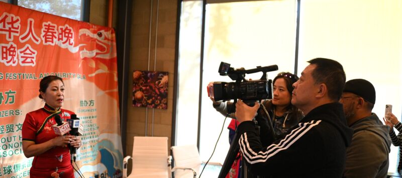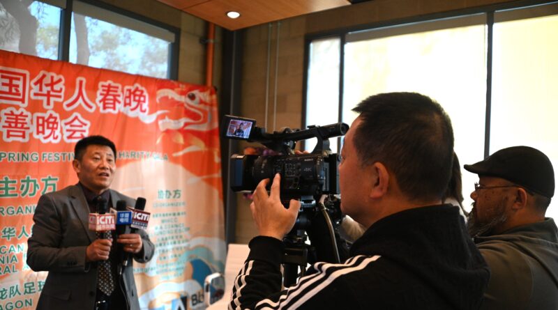 美国南加华人经贸文化协会创会会长、晚会出品人兼导演黄冬平接受各大媒体记者访问