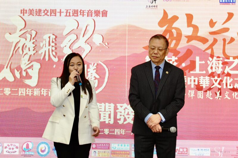 新年伊始,美国鹰龙传媒推出新年新春两大演出活动,并于1月19日(周五)在美国鹰龙传媒文化中心举办发布会。两场演出分别为美国鹰龙传媒联手美国梅拉诺文化演艺公司主办,中国驻洛杉矶总领馆支持的《2024鹰飞龙腾新年音乐会暨中美建交45周新年音乐会》;以及鹰龙传媒联手上海评弹团和美国南加州上海联谊会主办的《繁花·上海之夜暨中华文化之夜》。主办单位美国鹰龙传媒董事长、美国城市广播电视台总裁、美国南加州上海联谊会会长苏彦韬、中华人民共和国驻洛杉矶总领事馆文化参赞王太钰、文化领事毛勤、圣盖博市市议员丁言愉、亚凯迪亚市市议员王爱琳、上海市外国投资促进中心首席代表邵臻宇、联合主办单位美国梅拉诺文化演艺公司总裁李愔、执行总监索菲,及美国南加州上海联谊会秘书长秦丹里、理事苏林淑婷、陈定华、金丽萍、王建新、张蕴、陆依涵等嘉宾出席并致辞,表达祝贺之情。