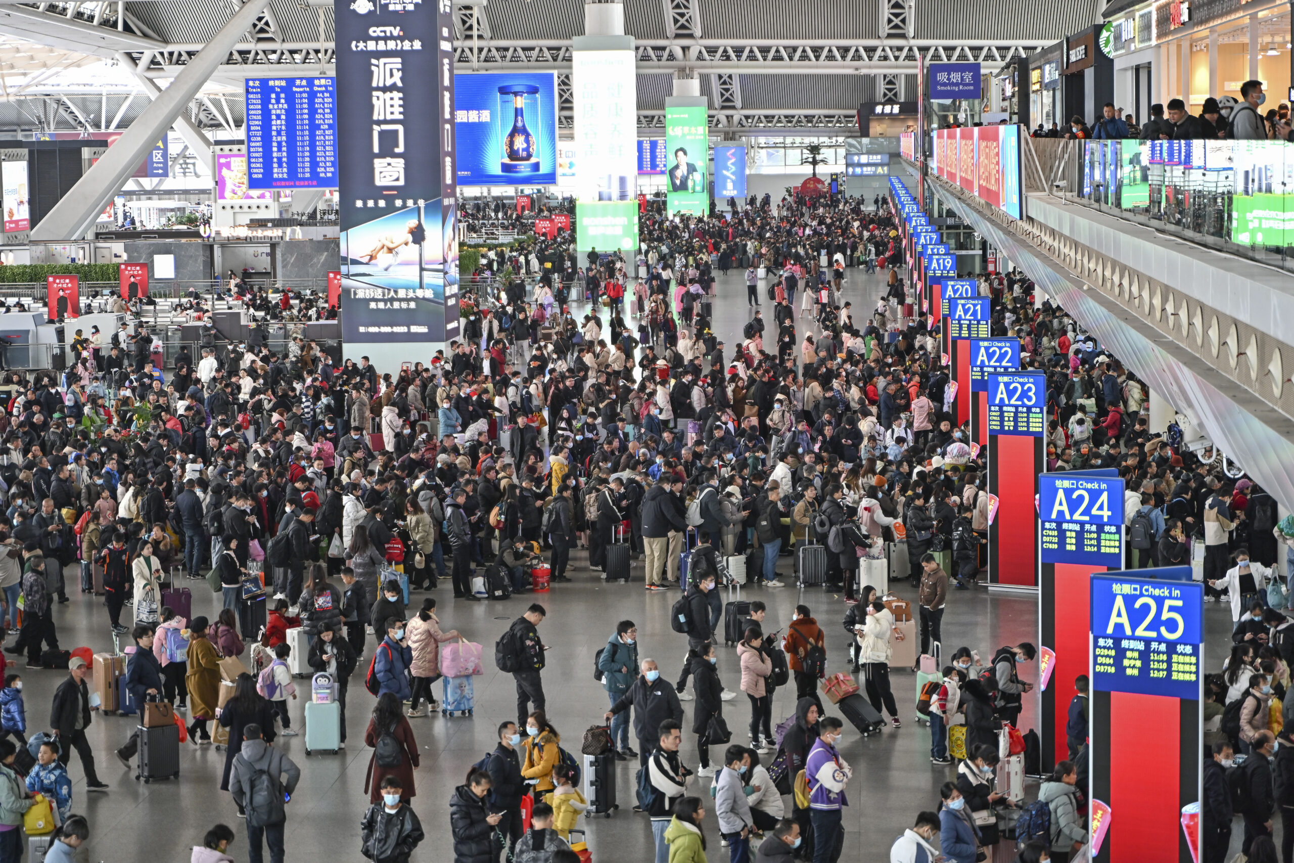 1月24日,旅客在广州南站候车。随着龙年春节的临近,广州南站客流渐增。中国2024年春运将于1月26日拉开帷幕。