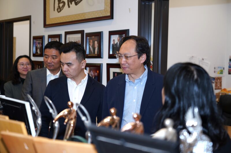 鹰龙传媒公司团队陪同代表团一行,先后参观了美国城市卫视、城市广播电台、城市新闻网及鹰龙传媒文化中心,并向代表团介绍了中美电影节、中美电视节等鹰龙传媒在美国长期以来为中美文化交流做出的贡献。随后,公司管理团队与代表团进行了深入的切磋交流。