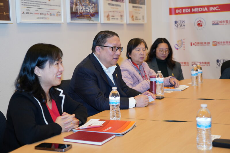 在座谈会上,美国鹰龙传媒公司董事长、美国城市广播电视台总裁苏彦韬、副总裁粱燕珍、卢威、林雪艳代表鹰龙传媒热烈欢迎江苏省广播电视台代表团的到来。苏彦韬董事长表示,美国鹰龙传媒已经深耕本土三十年,作为第一家拥有美国主流频道的亚裔媒体公司,一直以在海外维护华裔的知情权、平等权、传承权为己任,并坚持促进中美两地的文化艺术交流。他详细介绍了鹰龙传媒举办的中美电影节中美电视节、鹰飞龙腾新春音乐会等大型文化活动,展现了公司向各族裔介绍中华文化的努力,以减少种族歧视的影响力。美国鹰龙传媒管理层表示,美国拥有众多华人华侨,希望今后加强合作,促进中美文化交流,向美国受众介绍更多的中华文化。