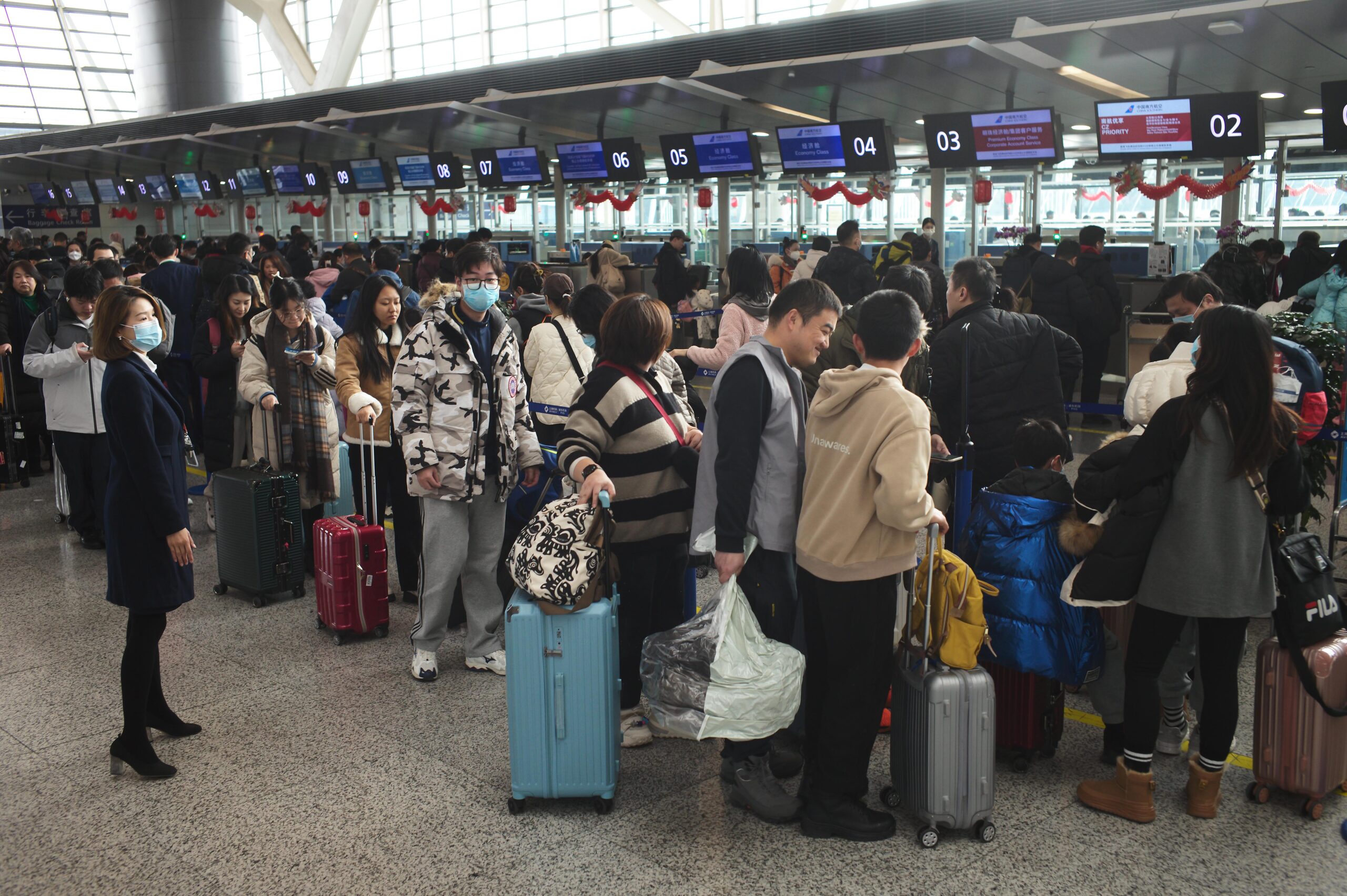 1月25日,旅客在上海浦东国际机场T2航站楼内等待办理登机手续。2024年春运自1月26日开始至3月5日结束,共计40天。预计今年春运期间,上海浦东、虹桥两大机场航班量将达到8.6万架次,同比增长29.8%;客流量1293万人次,同比增长57.6%。