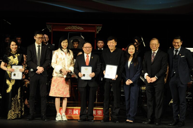 美国国会议员赵美心向主办单位美国鹰龙传媒公司董事长、美国城市广播电视台总裁苏彦韬和美国梅拉诺乐器有限公司、梅拉诺文化演艺公司总裁李愔颁发贺状并表示祝贺。