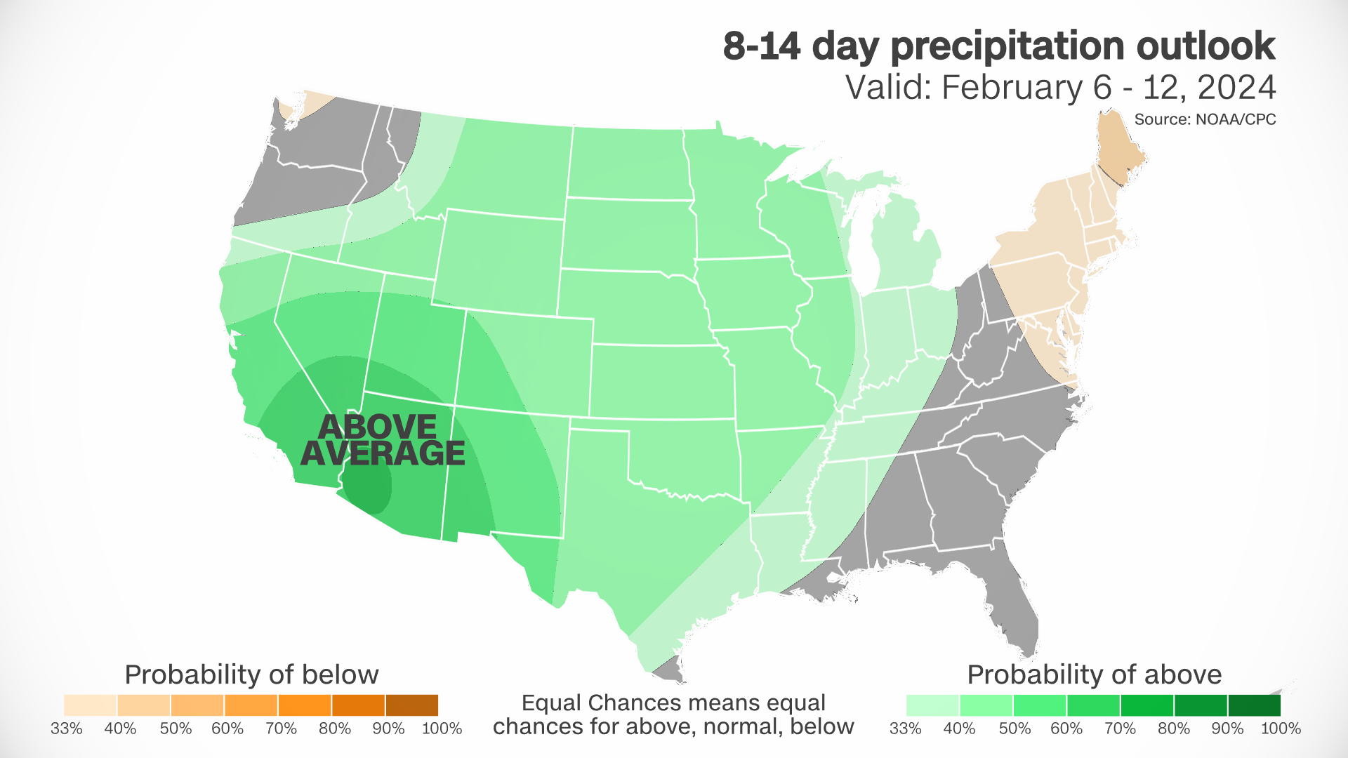 下一场强大的大气河流风暴将于2月4日(周日)到来。加州从潮湿天气中得到的喘息将是短暂的:第二场更强大的大气河流风暴预计将于2月4日(周日)抵达。虽然有关这场风暴的详细信息仍在逐渐清晰中,但气象模型指出,这场风暴可能会带来更广泛和更持久的洪水威胁,特别是对于南加利福尼亚。至少在该州其余地区可能会再次经历几天的雨雪。与第一场风暴相比,第二场风暴似乎将从一条大气河流中获取更多强大的水分,有可能在2月4日(周日)到周中左右带来几英寸的降雨。相对于第一场风暴,这场风暴的温度可能更低,雪可能会下到山口海拔甚至更低的地方。在第二条大气河流结束后,湿润而凉爽的模式可能会持续很长时间。根据气候预测中心(Climate Prediction Center)的展望,低于平均温度和高于平均降水量的条件可能会持续到2月中旬。