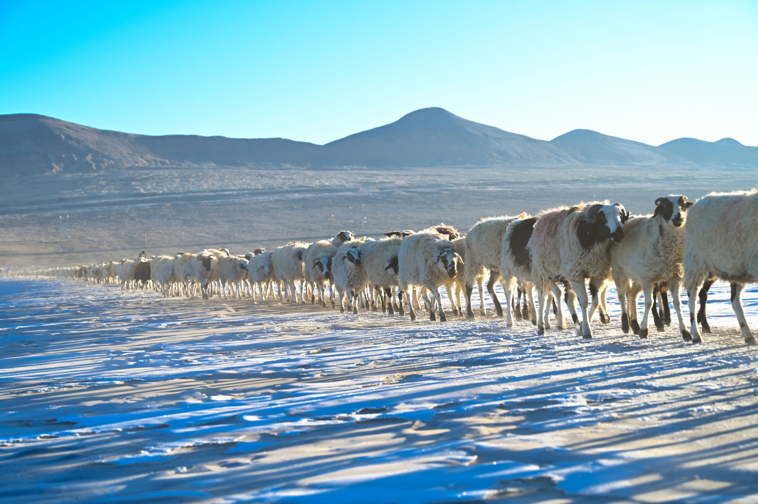 2月1日,世界海拔最高行政村推瓦村迎来了冰湖“赶羊”转场。图为2月1日,西藏浪卡子县,走在普莫雍错冰面上的羊群。 未经允许不得转载:城市新闻网icitynews » 世界海拔最高村落 西藏牧人冰上赶羊忙转场