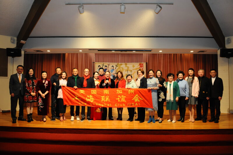 美国南加州上海联谊会会长苏彦韬、理事长周琴、副会长张峰、监事长包炜、财务长孙云娟、副秘书长秦丹里、理事苏林淑婷、张娴、游善跃、史浩、陈定华、邬素菲、金丽萍、丁瑞芬、王建新、张斌、卢悦雯、张蕴、周驰、陆依涵等上台为观众送上新春祝福。