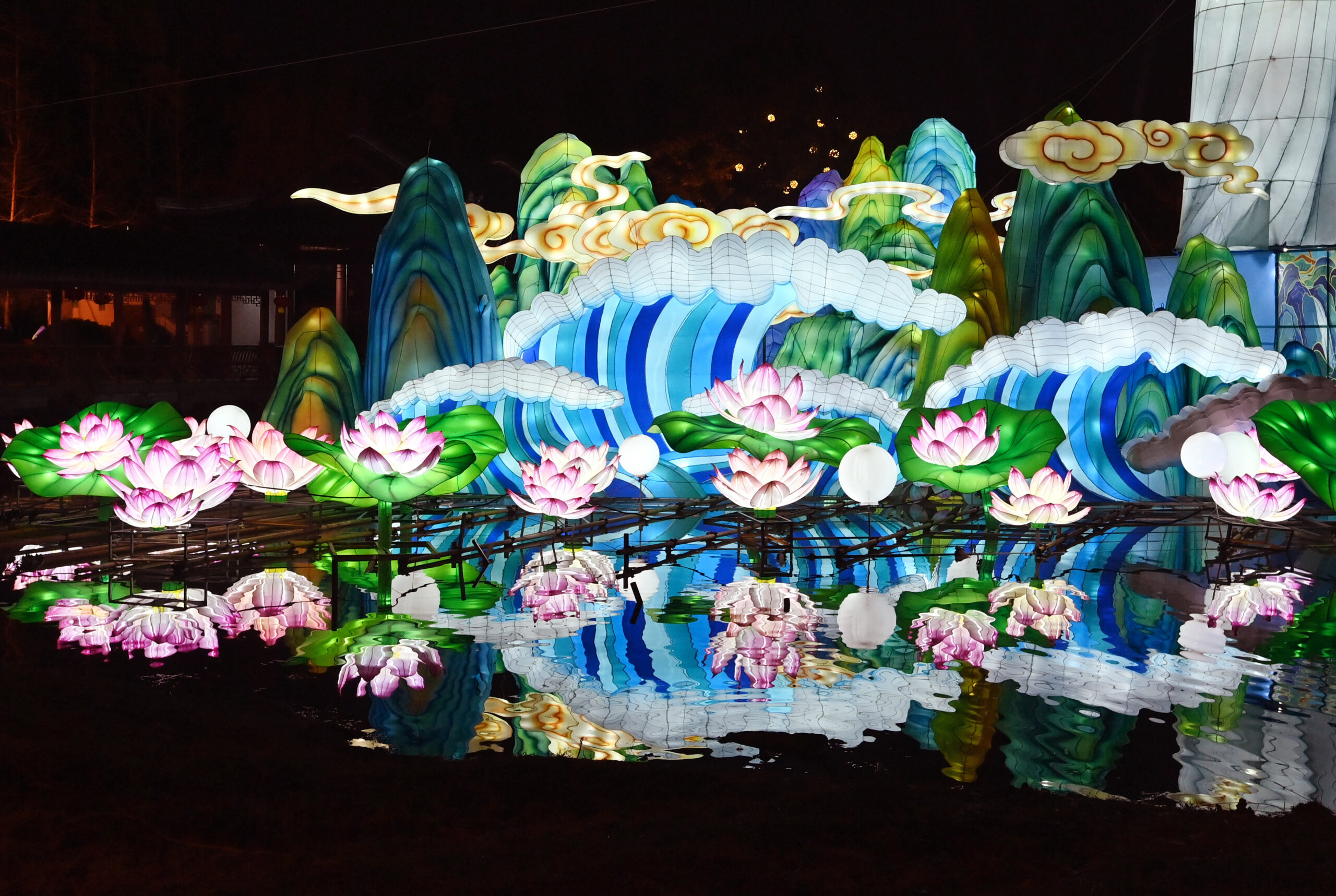 2月6日晚,“2024武侯祠成都大庙会”主题灯展全面试灯。据悉,灯展将武侯祠馆藏文物、诗词楹联、三国文化遗存调查成果等内容转化为形式鲜活的彩灯元素,以《空城计》《卧龙腾飞》《蜀汉盛景》《扇面之美》等15组主题灯组和14组氛围灯组,共同打造灯彩、灯影、灯秀、灯光重叠的多维场景。图为《卧龙腾飞》灯组局部造型。