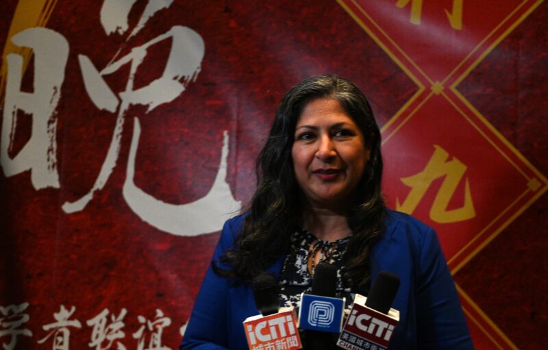 尔湾市市长Farrah N. Khan接受各大媒体记者访问