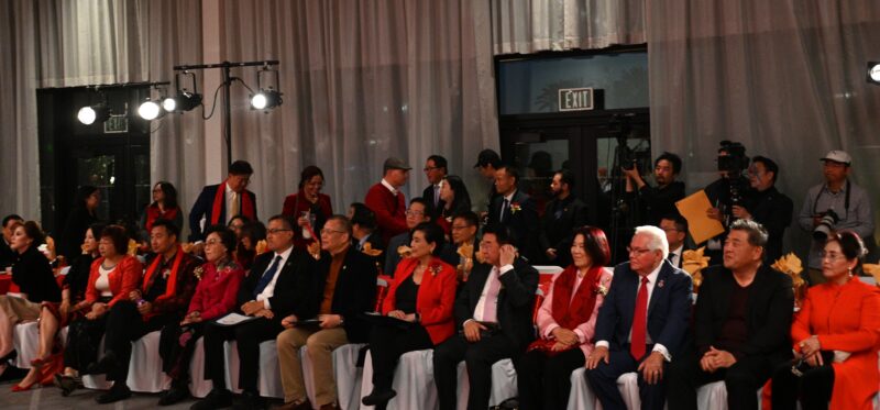来自于美国国会、加州、洛杉矶县政府、各个市政府的近30名政府官员、百位南加州重量级社团侨领出席了这场盛会。美国国会议员赵美心、加州参议员鲍勃 · 安丘雷塔、加州众议员方树强、洛杉矶县政委员会前郡长、现任委员Kathryn Barger 代表吴忠国、洛杉矶县估值官Jeffrey Prang代表Dara Smith、圣盖博市副市长吴程远、市议员丁言愉、柔似蜜市议员Sandra Armenta、伯班克市市议员Konstantine Anthony、南帕萨迪纳市议员Michael Cacciotti 、亚凯迪亚市市长April Verlato、亚凯迪亚市副市长高卿、亚凯迪亚市议员郑博仁、亚凯迪亚市议员王爱琳、坎普敦市学区警察局局长Will 吴、亚凯迪亚市消防局局长孙成、亚凯迪亚市警察局副局长John Boromo、亚凯迪亚市消防员协会会长Jon Ansell、亚凯迪市警官协会副会长、亚凯迪亚市警察局警长Joshua、警长Daniel、警官Eric 、警官Drew、亚凯迪亚警察基金会理事及亚凯迪亚市中心委员会理事张奔出席了这场盛大的春节联欢晚会。