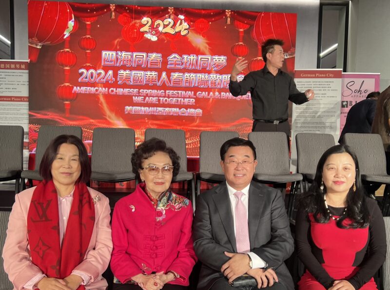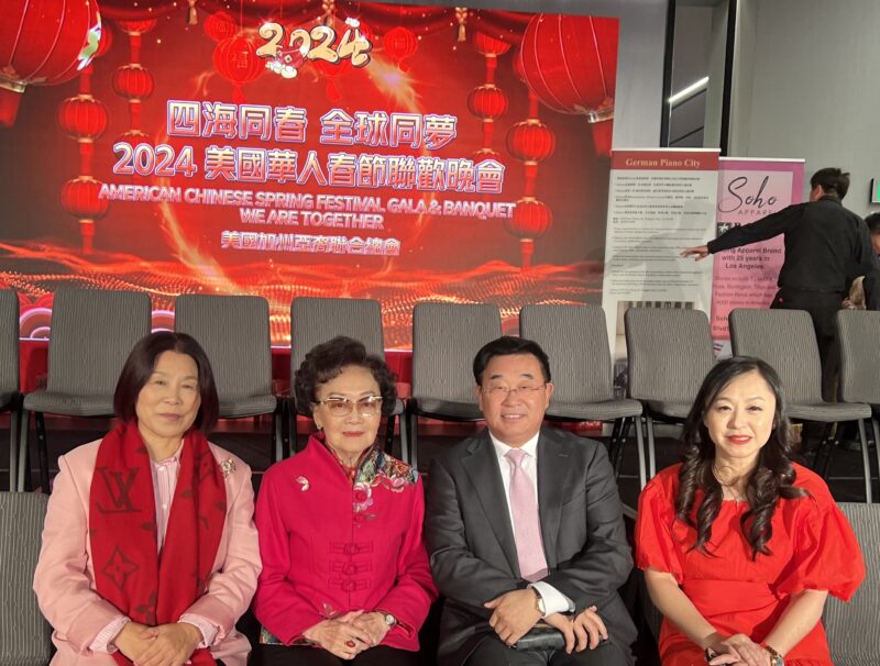 美国南加州华人社团联合会荣誉主席张素久、美国南加州华人华侨联合总会会长蔡成华、美国南加州华人社团联合会主席陈慧碧、美国南加州华人社团联合会荣誉主席鹿强出席了春晚活动并为大会带来10份过年文化大礼盒送给现场观众。