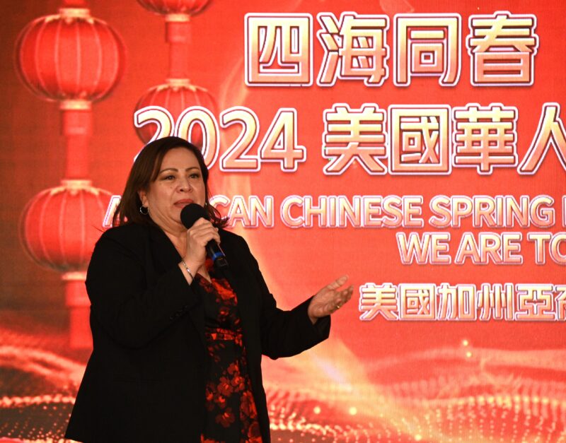 大会主席、总策划、总制作人美国加州亚凯迪亚市议员、美国加州亚裔联合总会会长王爱琳致词