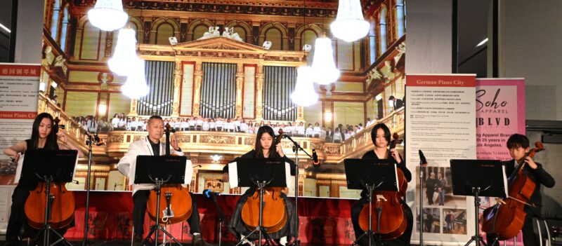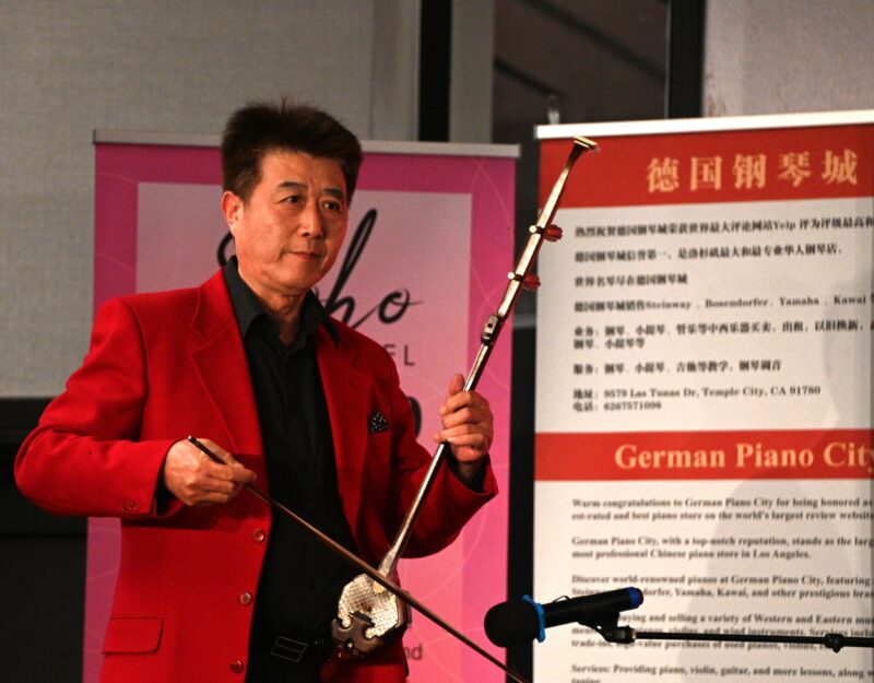 尔湾音乐之美Beauty of Music创始人Sarah Zhang和亚凯迪亚知名男高音冯圆铨一起为本次春晚表演了即兴钢琴节目《奇异恩典》,为现场观众献上新春祝福。由胡毓心和杨维平,用意大利文带给晚会的一曲著名歌剧,茶花女选段《饮酒歌》非常应景,专业的美声演唱,专业的名曲,再一次把晚会推向结尾的高潮。美酒加美声为2024年的春节带来健康和快乐!洛杉矶「大提琴的家」演奏两首大提琴重奏,其中《大提琴之歌》改编自巴赫无伴奏大提琴组曲1007前奏曲、以及《游击队之歌》。乐团首席大提琴是来自亚凯迪亚高中学生Christ TY Pang ,演奏8级程度、最小的大提琴手haoxin Guo 今年才九岁。