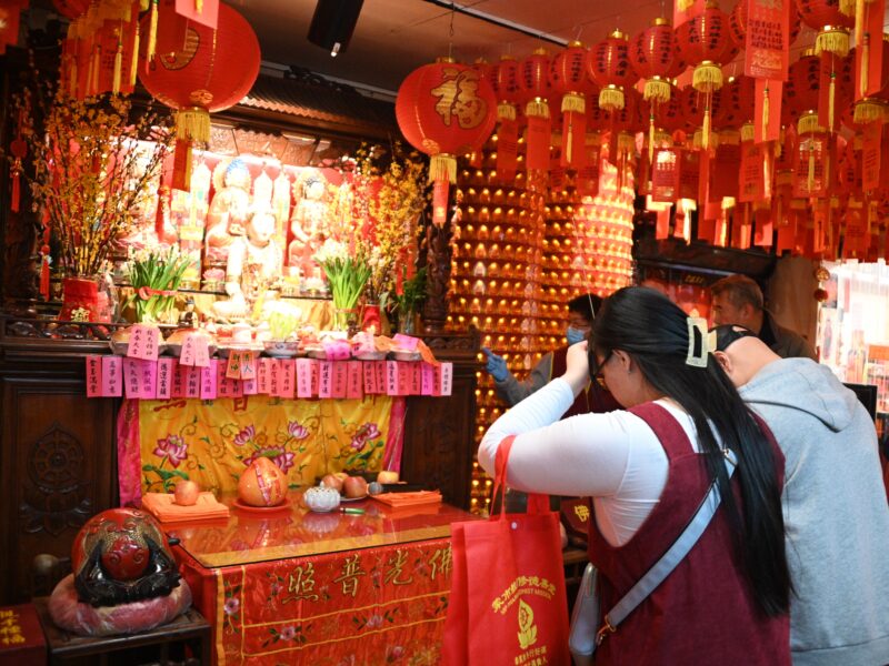 城市新闻2月16日蒙市、中国城报导,爆竹一声除旧岁,海外华人按照传统习俗,在除夕享用团年饭后,就会前往庙宇上头炷香,迎接新年来临。亚裔人口逾70%的蒙特利公园市的「般若修德善堂」及「赤松黄大仙祖宫」,除夕夜10时过后人潮涌现,善信们从四方八面到达上「头炷香」,祈求龙年阖家平安,身体健康,如意吉祥。