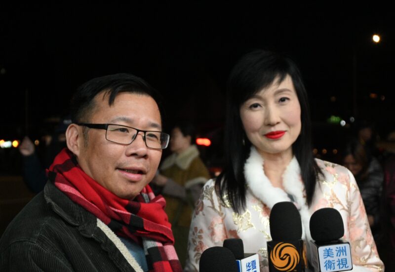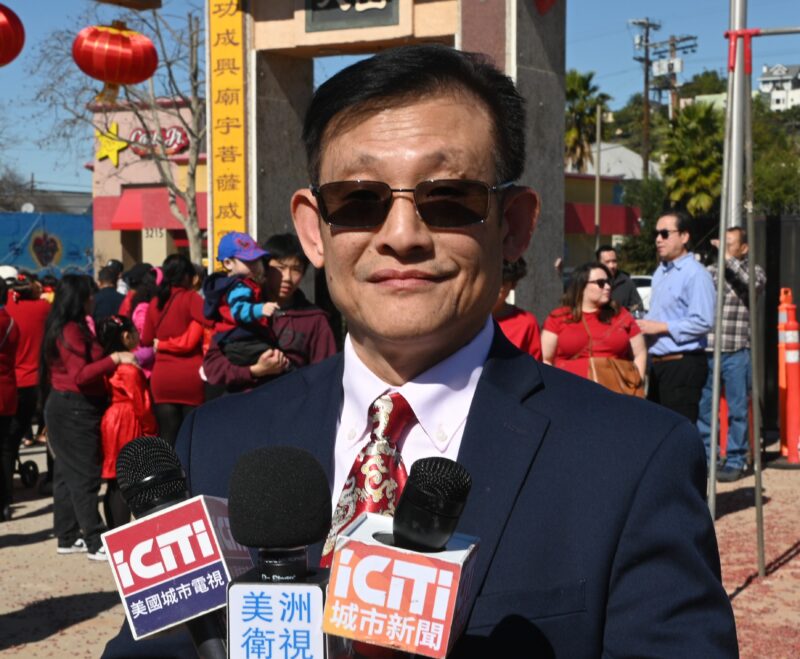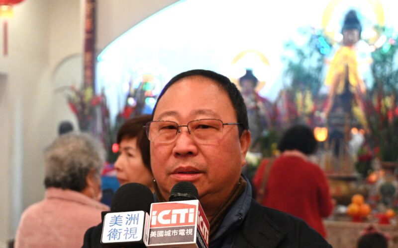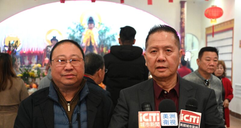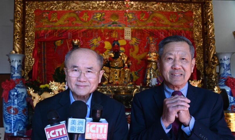 南加州潮州会馆会长谢金昭(左)、监事长吴林盛(右)接受各大媒体记者访问