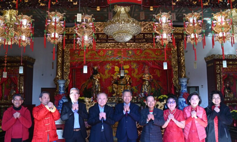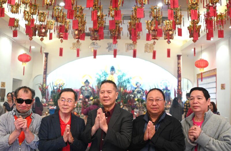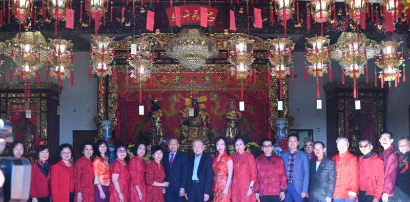 大年初一、中国城华人侨社龙年团拜,一派热闹景象。南加州潮州会馆寺庙香火鼎盛,人头攒动。会长谢金昭、监事长吴林盛、老会长郭克才早就来到潮州会馆点香拜佛,恭贺龙年大发。