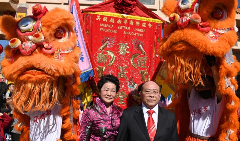 越南华裔联谊会主席招铭祺偕夫人向民众拜年