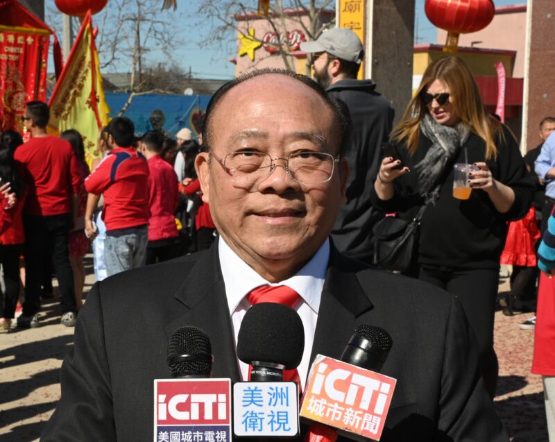 美国海宁同乡总会监事长李振永接受各大媒体记者访问