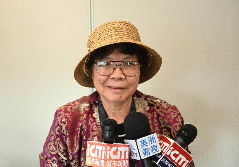 美国广东会馆会长蔡洁仪接受各大媒体记者访问