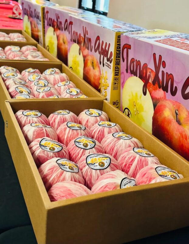 组委会为民众派发象征“平安幸福”的苹果,祝福大家健康平安吉祥如意
