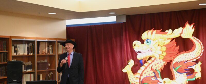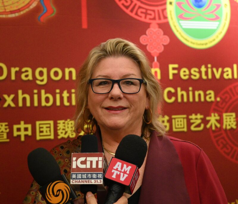 中国驻洛杉矶总领事馆文化领事柴贇致词表示,他代表中国驻洛杉矶总领事馆祝多元文化节和点龙灯仪式圆满成功, 连续多年生肖点灯, 祝节日快乐, 并对中国兰州大学艺术学院魏万勇书画展成功举行表示热烈祝贺。美国国会议员Porter 代表Cody Mendoza讲话并向主办方颁发贺状。索非亚大学校长Carol Humphreys 博士致词表示,2024年是充满希望的一年,是焕然一新的一年,我们进入力量、智慧、好运和健康的一年。她还介绍索非亚大学的历史和发展前景。