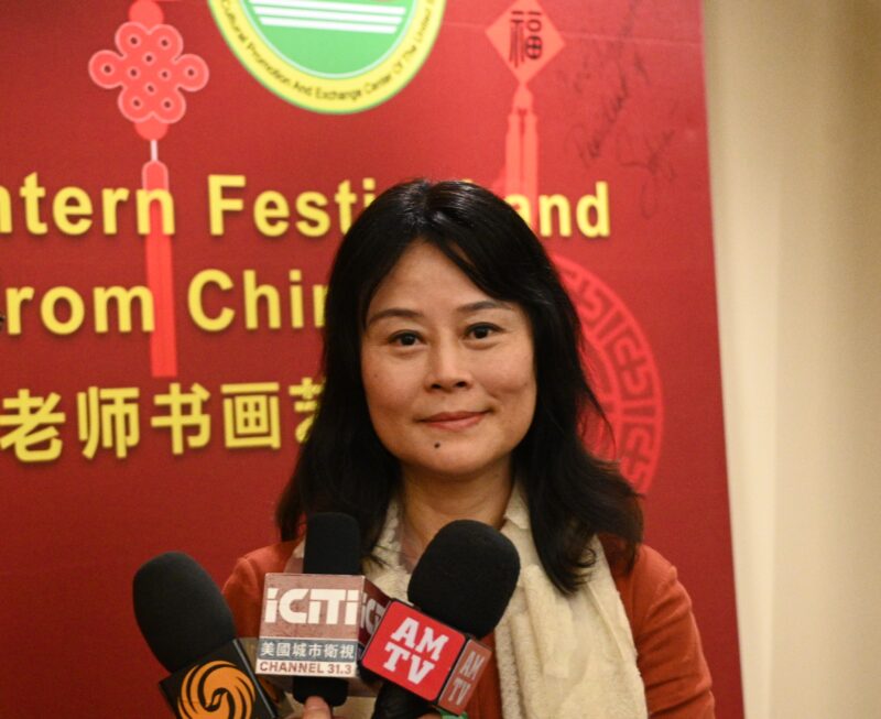 城市新闻2月24日橙县报导,橙郡多元文化节点亮龙灯,魏万勇书画艺术展索非亚大学图书馆大厅热闹举行。加州财务长马世云、洛杉矶郡郡长伯格视频祝贺新春,中国驻洛杉矶总领事馆文化领事柴贇、毛勤、美国聚源文化交流促进中心负责人鲁安博士、美国重庆总商会和自贡灯彩集团代表Lisa、橙郡西班牙裔商会代表、尔湾市商会代表、兰州大学艺术学院画家魏万勇代表魏薇、世界武术好莱坞文化总联盟主席衣世雄、世界平衡发展基金会董事华蓝星(Ramess Rashidi)、贵州古生物奇石博物馆董事长陈辉娅、知名作家韩舸友等一百多人参加,共襄盛举。索非亚大学助理副校长李萍(Penny Li)主持盛典。