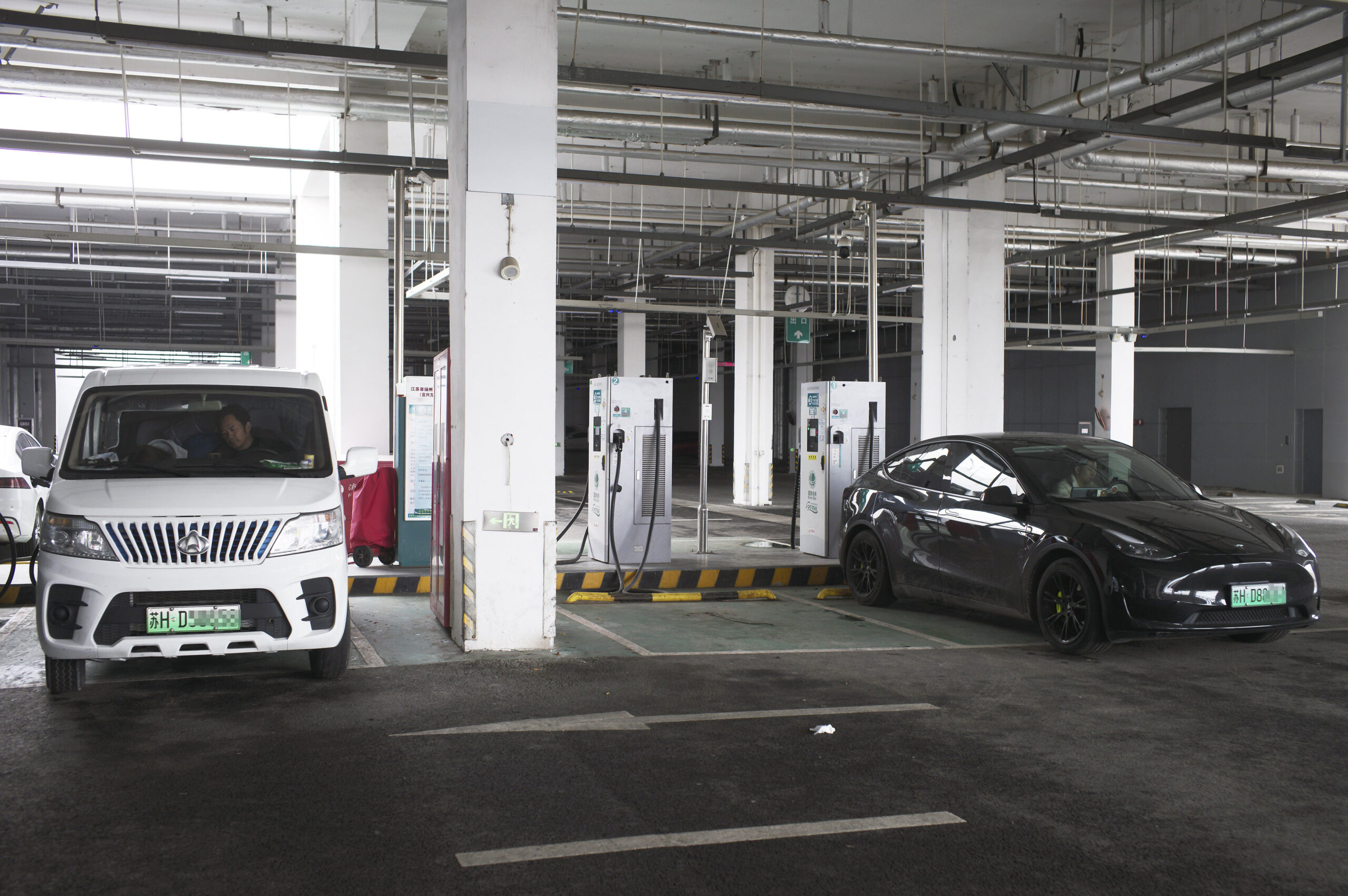 3月1日,江苏扬州,车辆在京沪高速广陵服务区充电。中国交通运输部今年计划新增公路服务区充电桩3000个、充电停车位5000个,鼓励在服务区建设超快充、大功率充电设施。