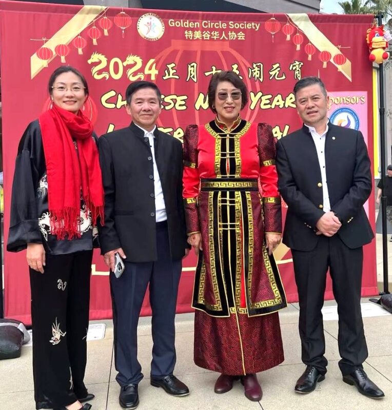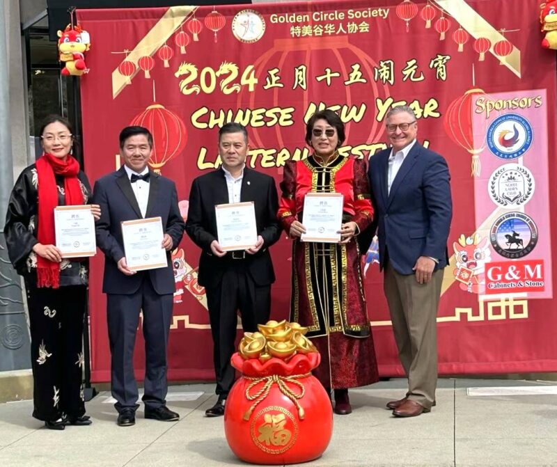 代表特美谷市市长James Stewarts的南加州区域公共事务委员Adam Eventov,加州财务长马世云的代表Daniel Sieu和Ling Sieu、加州特美谷市经济进出口贸易部执行董事Connie Stopher、加州特美谷市商会会长 Paul Rangel、Murrieta商会会长 Patrick Ellis、Brookfield 地产集团Temecula Mall 高级总经理 Jeff Kurtz等政商界人士到场祝贺中国传统节日元宵节,并颁发贺状感谢美国特美谷华人协会会长、美国内蒙古总商会会长、美国女企业家俱乐部会长于忠霞及特美谷华人协会团队为特美谷社区带来的中国传统节日的热烈气氛和精彩表演。