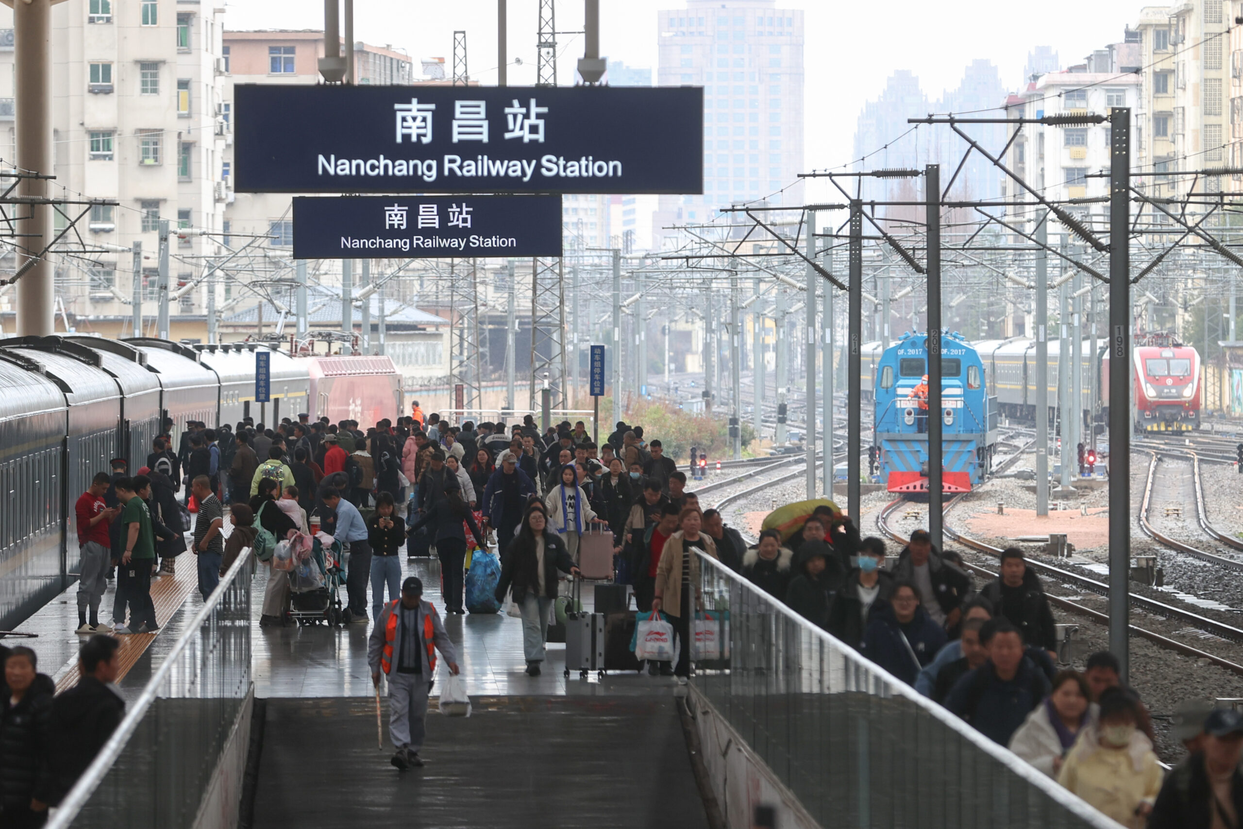 3月5日,江西南昌,旅客在火车站出行。为期40天的春运将于当日结束,记者从中国交通运输部获悉,2024年春运40天全社会跨区域人员流动量预计超84亿人次。其中,铁路客运量预计完成4.8亿人次。