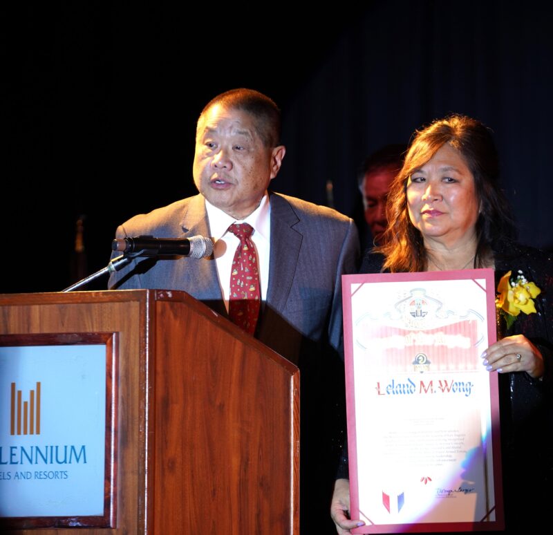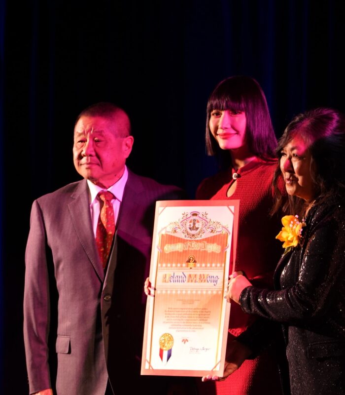 洛杉矶县县政委员巴格 (Kathryn Barger)对美国华裔退伍军人嘉奖。迪斯尼影业的Valorie Wiggins 向退伍军人后代Arascena Fong 颁发名人堂助学金。