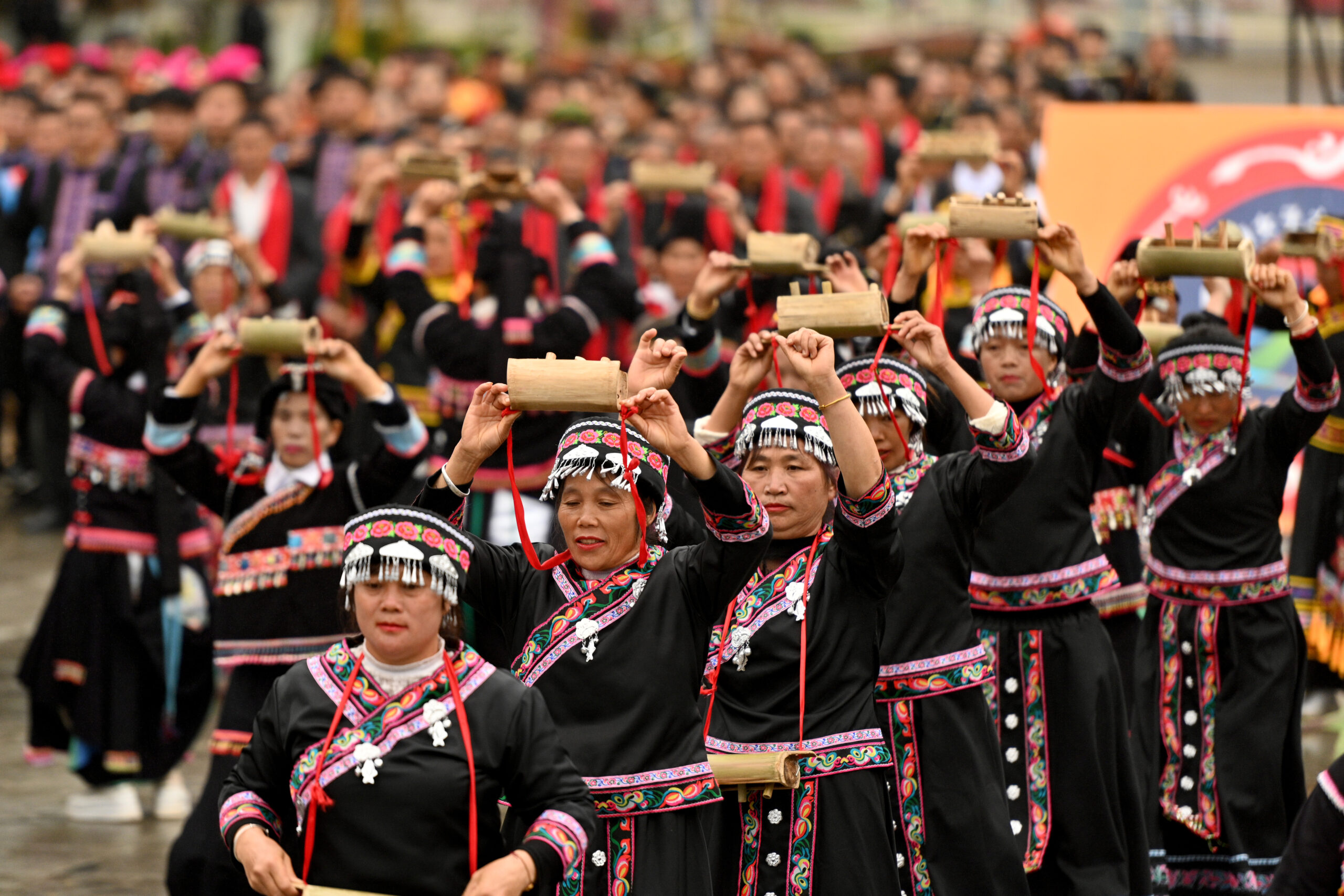 3月8日,新马街乡壮族民众表演《大联欢》。当日,2024中国·西畴女子太阳节在云南省文山壮族苗族自治州西畴县开幕。 未经允许不得转载:城市新闻网icitynews » 云南文山:2024中国·西畴女子太阳节开幕
