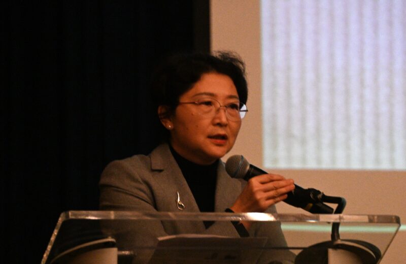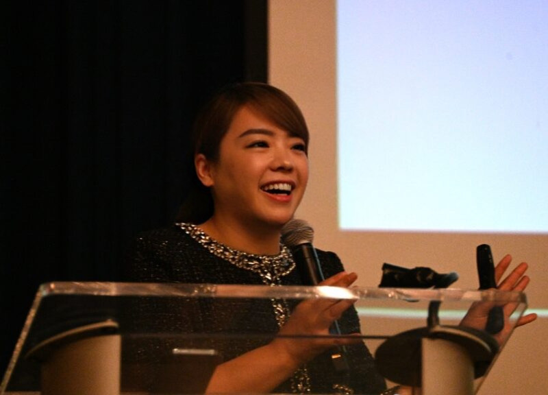 主持人庞献清(Pamela Pang)会计师(右)致词、主持人王小颖