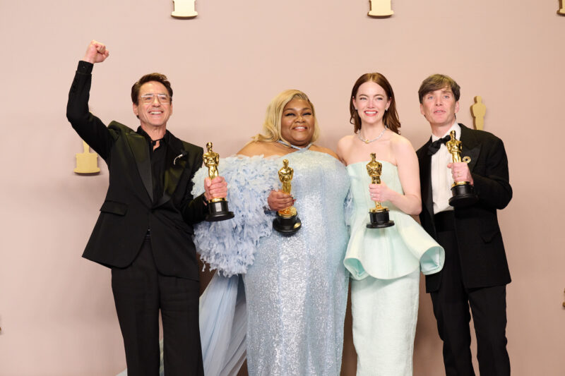 Robert Downey, Jr., Da’Vine Joy Randolph, Emma Stone, and Cillian Murphy pose backstage with the Oscar® for Actor/Actress in a Supporting Role and the Oscar® for Actor/Actress in a Leading Role during the live ABC telecast of the 96th Oscars® at Dolby® Theatre at Ovation Hollywood on Sunday, March 10, 2024.