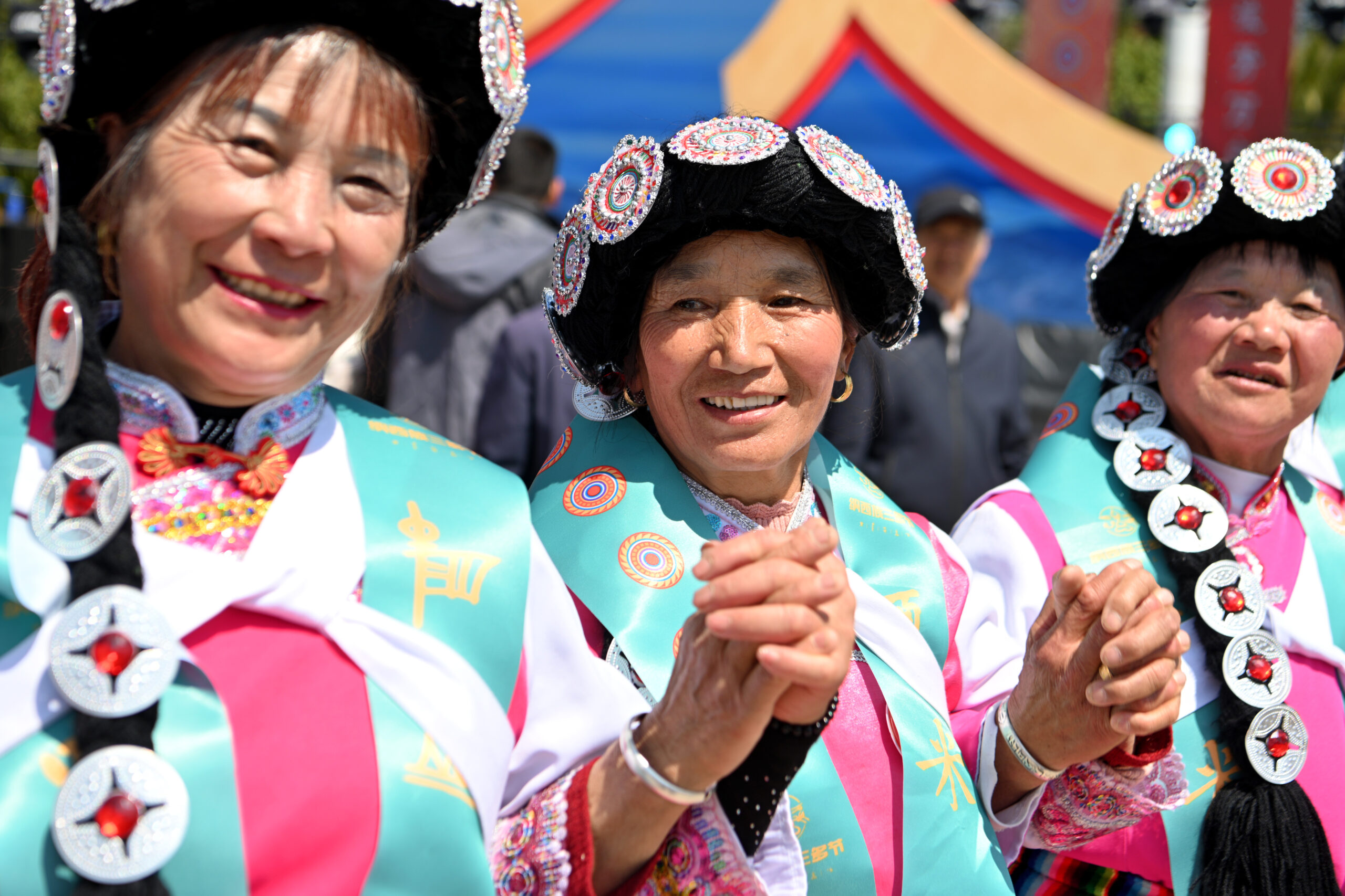 3月17日,云南丽江,纳西族民众在玉龙广场打跳欢度“三多节”。当日,是纳西族标志性节日“三多节”,该节至今已有1200多年的历史。2021年,“三多节”被列入国家级非物质文化遗产代表性项目名录。