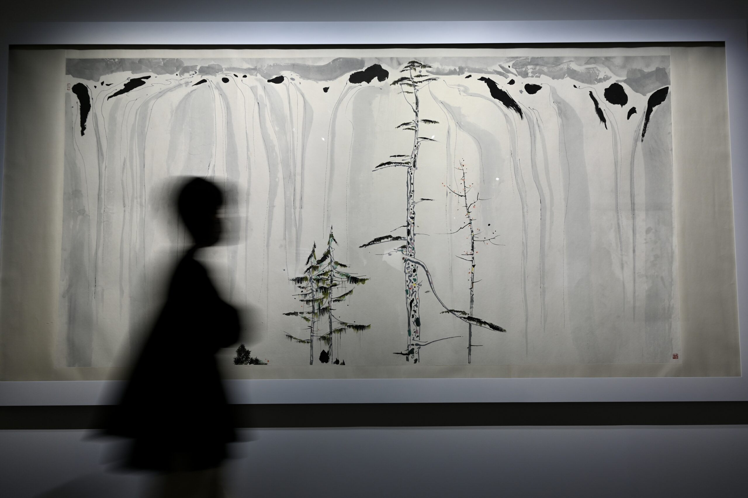3月21日,香港艺术馆举行传媒预览介绍将推出3个“吴冠中艺术赞助”项目,其中包括专题展览“吴冠中——黑·白·灰”,3个项目从不同角度和手法深入诠释吴冠中的美学概念和展示中国近现代艺术面貌。图为吴冠中水墨艺术作品《瀑布》。