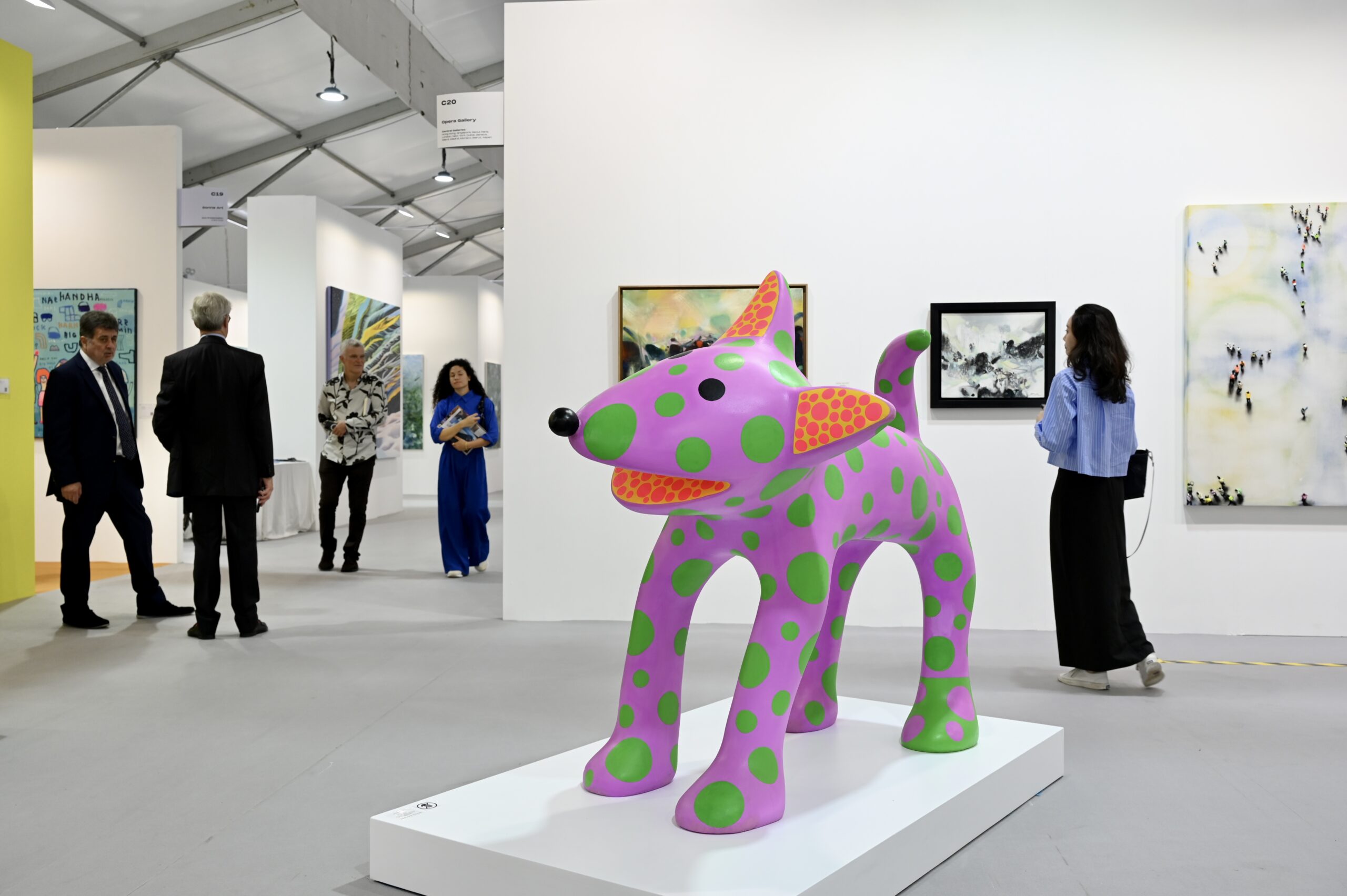 3月27日,香港艺术盛事Art Central主办方举行预览活动,让受邀人士提前欣赏艺术展览。该展览将于28日至31日在中环海滨举行,有95家艺廊参与,呈献来自亚洲且风格大胆创新展品,让入场人士享受一场视觉盛宴。图为各种潮流艺术作品。