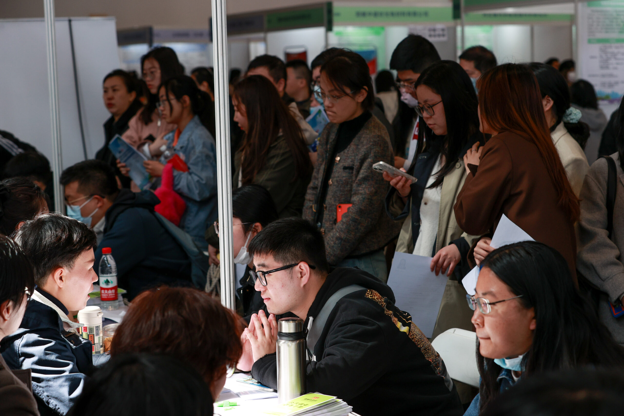 3月30日,由京津冀三地人社厅(局)组织的“第十二届京津冀招才引智大会暨2024年北京市大型春季现场招聘会”在北京中国国际展览中心举办。本次招聘活动采取“现场招聘+直播带岗+线上专场”模式,汇聚三地优质企事业单位200家,提供就业岗位近7000个,为广大求职者和用人单位搭建供需精准对接平台。图为招聘会吸引了大量求职者。