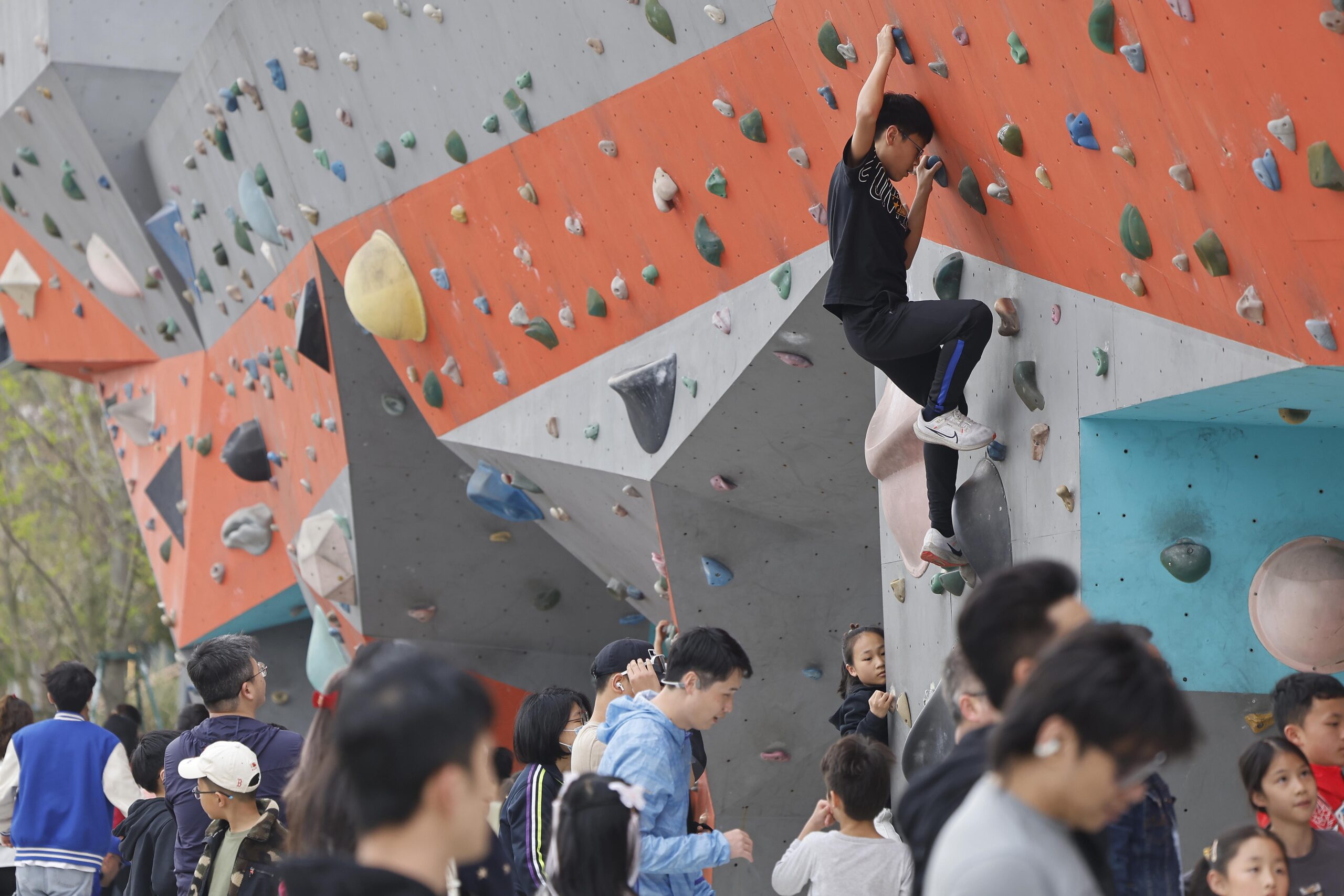 4月4日,市民带着孩子在上海徐汇滨江绿地体验攀岩运动。据悉,巴黎奥运会资格系列赛·上海将于5月16日至19日在黄浦滨江举行,作为国际奥委会新创办的集体育、文化、艺术于一体的节日型赛事,奥运会资格系列赛是《奥林匹克2020+5议程》的重要内容,包括自由式小轮车、滑板、霹雳舞和攀岩4个大项6个分项的比赛,奥运会资格系列赛将是这四个项目的终极资格赛。
