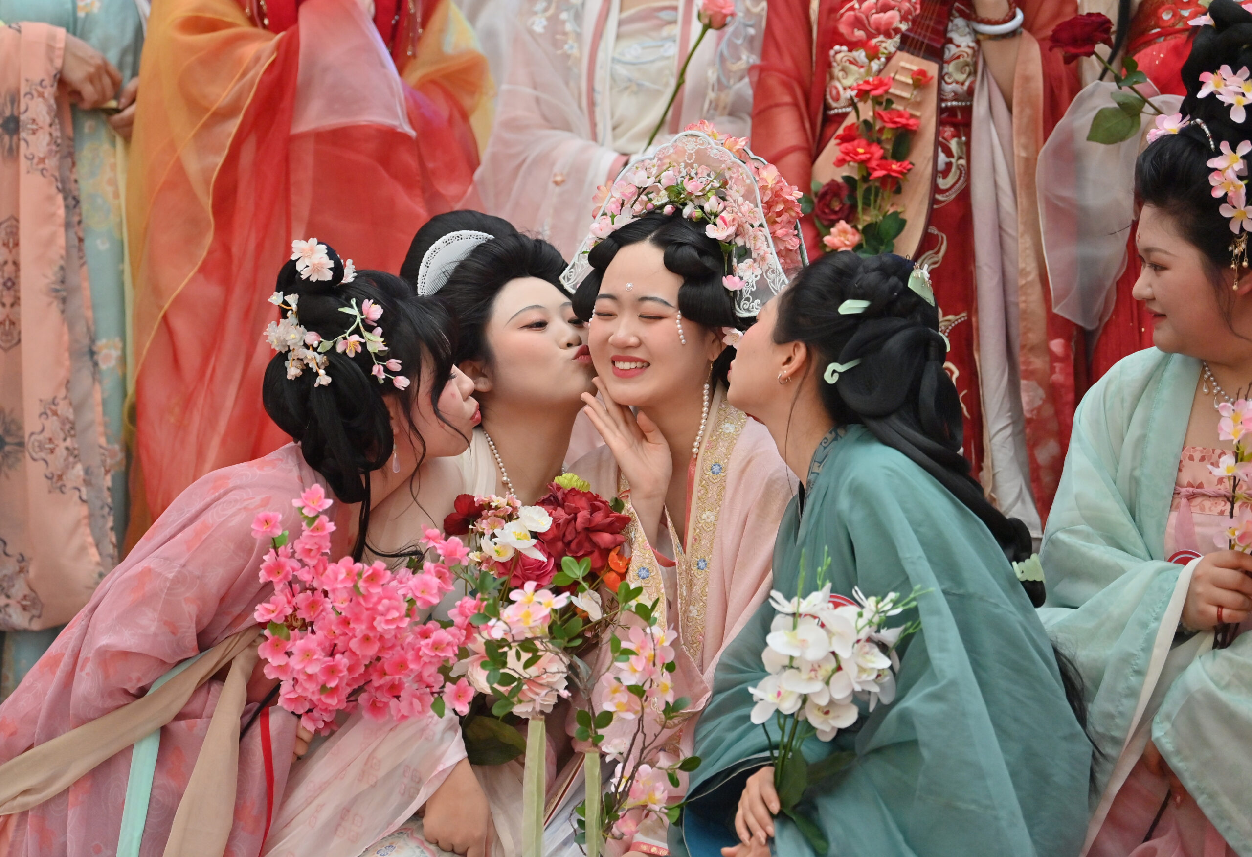 4月5日,吉林长春,汉服爱好者扮花神拍照。当日,百余名汉服爱好者齐聚长春花朝节,扮成花神走秀。花朝节又称“花神节”,是一个庆贺“百花生日”、迎接春天到来的节日。